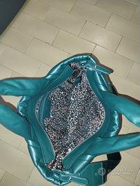 Borsa originale Liu-Jo a mano o con tracolla regolabile e removibile color verde petrolio in ecopelle con cerniera centrale. All'interno ci sono due scompartimenti (uno con cerniera e uno senza). Misura 35x33x15. Misura con tracolla da cm 80 a cm 120. Condizioni perfette usata una sola volta per una serata
