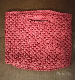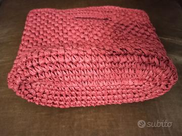 Borsa a mano OVS originale, rossa, in rafia (fibra vegetale), foderata, con zip interna, chiusura a bottone magnetico. Mai usata, come nuova, misure 31x28x12cm.