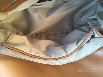 vendo borsa a mano, marca Giò&Co, in pelle marrone chiaro, chiusura a pulsante, cerniera interna, scomparti interni aperti, mai usata e in perfetto stato.