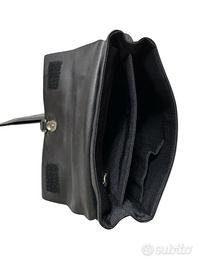 In pelle nera con dettagli in cotone e tessuto tecnico con lavorazione a nido d'ape. Interno in tessuto tecnico nero con lavorazione a nido d'ape. Manico amovibile in cotone in tinta e dettagli in pelle. Chiusura con patta fermata da magnete e velcro. Completa di bustina amovibile in pelle nera fermata con velcro. Una tasca posteriore fermata dacoulisse.Hardware in metallo argentato. in pelle nera con dettagli in cotone e tessuto tecnico con lavorazione a nido d'ape. Interno in tessuto tecnico nero con lavorazione a nido d'ape. Manico amovibile in cotone in tinta e dettagli in pelle. Chiusura con patta fermata da magnete e velcro. Completa di bustina amovibile in pelle nera fermata con velcro. Una tasca posteriore fermata dacoulisse.Hardware in metallo argentato.