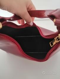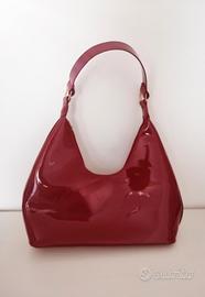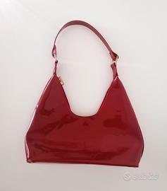Borsa a Mano Simil-Vernice Rossa Capiente Dimensione piccola Misure: altezza nel punto più basso 11 cm, altezza massima manico compreso 40 cm, larghezza manico 16 cm, larghezza massima 27 cm Nessun Difetto Noto