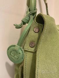 borsa a spalla Timberland in suede e pelle ?color kiwi, inserti in pelle e una tracolla in pelle da portare in spalla.