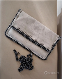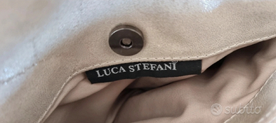Borsetta a mano con tracolla a catena Luca Stefani. Color tortora, tre tasche. Dimensioni 30X19cm.