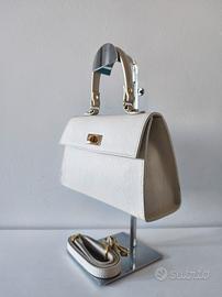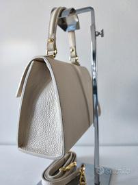 Borsa a mano/tracolla in vera pelle. Made in Italy. colore: beige/panna