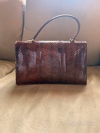 Bellissima borsa a mano in pitone originale vintage due scomparti più tasca con ceriera