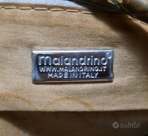 Una borsa vintage usata, a mezzaluna, marca Malandrino. Condizioni discrete, è stata usata bene. Misure. 41 cm x 22 cm x 11 cm circa.