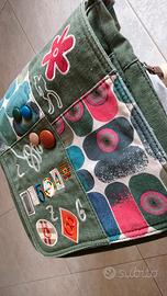 Vendo OTTIME CONDIZIONI borsa tipo postino particolare molto carina con tasche esterne e interne. Patchwork sul davanti con ricami decorativi colorati, numeri e motivi geometrici. Misure: 30cm x 30 cm con tracolla lunghezza max 120 cm circa.