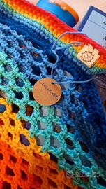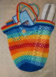 borsa a rete fatta a mano all'uncinetto in filo di cotone 100%, ideale per spiaggia, pic nic, tempo libero, scuola. pezzo unico! prezzo trattabile