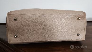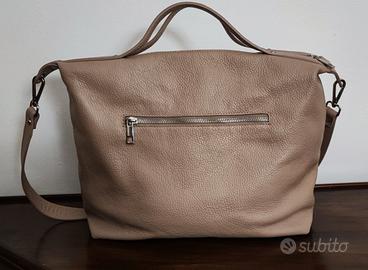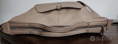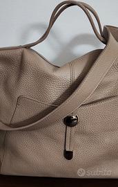 Borsa a sacca in morbidissima pelle color cipria, con tracolla.