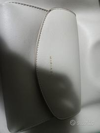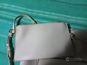 capiente borsa a sacco similpelle, come nuova, grigio chiaro, ha portafoglio interno removibile larghezza 29 profondità 14, altezza 30 cm