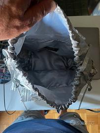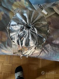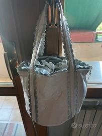 Vendo Borsa a Secchiello bianco con dettagli argentati e smerlati il marchio come si vede è visibile ed è CARPISA.