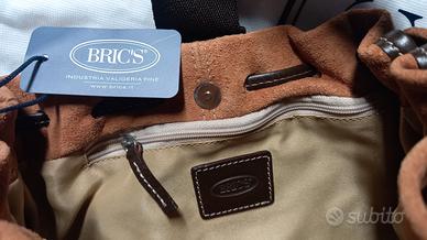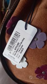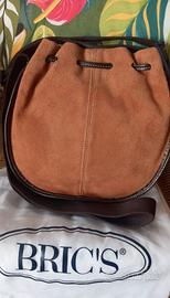 Borsa a secchiello BRIC'S in pelle scamosciata "Four season fiore handbag" - Dimensioni esterne cm 24x25x8 - Colore cognac con applicati fiori colorati in pelle sagomati - Tracolla regolabile lunghezza max c.a. cm 140 - Foderata - Tasca interna laterale con cerniera - Chiusura con coulisse e bottone automatico - Custodia antipolvere - Da indossare a spalla o cross-body -