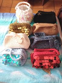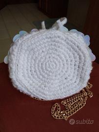 Fatta interamente a mano all'uncinetto a punto Stella con manico tubolare .