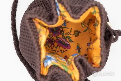 Realizzata all’uncinetto con cordino color tabacco, foderata.