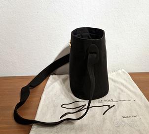 Elegante borsa a secchiello, in tela, by Genny Colore nero, con logo metallico dorato Misura media Vintage! 100% Made in Italy!!!