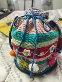 Bellissimo secchiello, anche se il dentro è stato un po' arrangiato perché non ho la macchina da cucire, ma l'esterno della borsa è troppo bello, fatto a mano con applicazioni di fiori e bon bon...