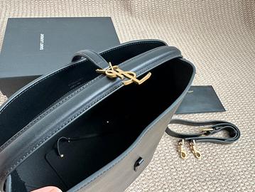 Con manico superiore. Questo nuovo modello è realizzato in pelle di vitello. La borsa presenta una silhouette pulita e scolpita e un aspetto robusto. Presenta inoltre piedini in metallo alla base.