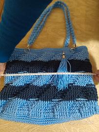 borsa donna lavorazione artigianale a mano con cordino MAF di cotone, colore blu e azzurro.