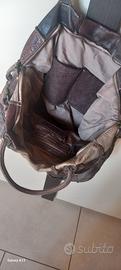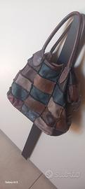 borsa in vera pelle , a spalla, color patchwork: marrone, tortora, avio, grigio scuro. Tasche interne, una con zip. Vendo 15€