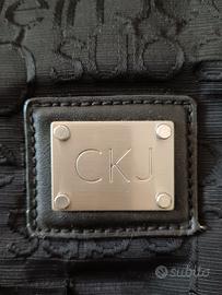 Borsa Calvin Klein Jeans, originale. Usata ma in ottime condizioni. In tessuto con logo, qualche piccola piega nel manico in pelle. Doppia taschina interna. Dimensioni circa 35x37 cm.