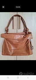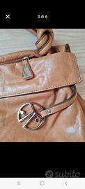 Borsa a spalla originale Coccinelle, color cognac, con motivi in rilievo.