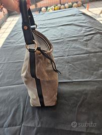 borsa a spalla coccinelle in scamosciato. verde/grigia. con chiusura a cerniera. ampia e internamente ha una tasca. misure 31x13 h 36. in ottime condizioni