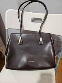 Borsa a spalla Cromia color marrone e tortora, 100% pelle bovina. Cerniera e dettagli in color oro. All'interno della borsa vi è una tasca con chiusura a cerniera, e altre due tasche sul lato opposto senza chiusura cerniera.