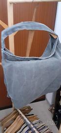 Borsa a spalla in cotone, molto ampia, con taschino sulla parte frontale.