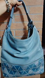 Borsa a spalla da donna, azzurra con decorazione nella parte inferiore, comoda e capiente con 4 tasche interne.