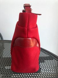 Borsa rossa di Mazzini, in tessuto tecnico con inserti in pelle, ha una tasca nella parte davanti che si chiude con un bottone a calamita. All'interno c'è una tasca con cerniera per il portafogli, una tasca porta oggetti e una per il cellulare. Misura cm 22x21x12, la tracolla in pelle è lunga 63 cm. In ottime condizioni, usata in un paio di occasioni, è fornita in custodia originale. Ritiro a carico dell'acquirente a Milano zona Lorenteggio.