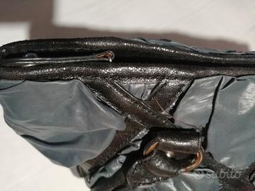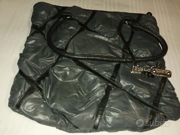 Borsa in nylon effetto piumino con finiture in finta pelle. Enrico Coveri. La tirella della tasca interna è rovinata come visibile dalla foto.