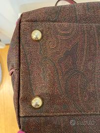 Borsa pari al nuovo. In pelle con profili viola Doppi manici 3 scomparti interni, uno chiuso da zip Dustbag originale