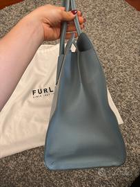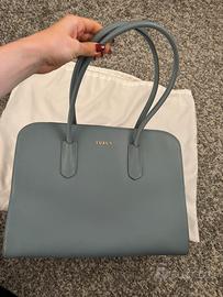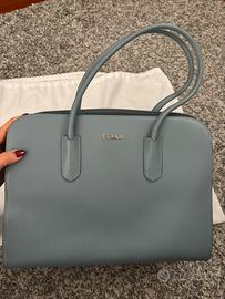 Vendo borsa a spalla Furla, dimensione grande, molto capiente, con custodia originale. Mai indossata. Colore grigio blu, condizioni perfette. Tre scomparti interni come in foto.