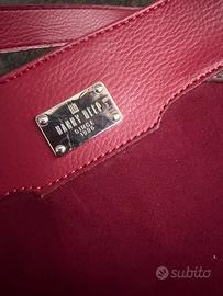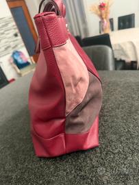 Elegante borsa a spalla Hanny Deep, realizzata con un patchwork di materiali pregiati. - Patchwork di pelle e camoscio. - Dettagli in pelle bordeaux. - Design geometrico moderno. -Misure 42x30x13. -Pari al nuovo.