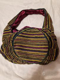 sacca in velluto a righe multicolor Doppia chiusura con calamita e con coulisse Interno in viscosa con tasca chiusa con zip Mai utilizzata