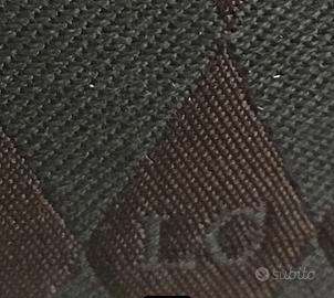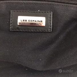 Mini bag a spalla marca Les Copains pelle nera e tessuto a losanga con sfumatura marrone , chiusura con cerniera ,fodera interna in tessuto con taschina con cerniera . Targhetta interna con logo .Usata ma conservata bene e con cura . Misure: 26X14 cm .Manico cm 52