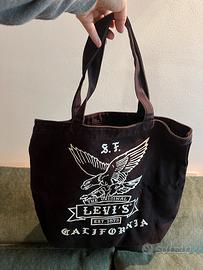 Borsa a spalla in tessuto color nero, originale Levis, senza zip, con tasca interna, dimensioni: fondo cm. 30x14, altezza cm. 35, manico cm. 50. Usata ma tenuta molto bene.