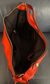 Borsa Manila Grace rosdo corallo in poliuretano Interno nero con tre tasche Chiusura con cerniera Misure: 33 h, 33 l, 16 p Fondo rigido Mai usata