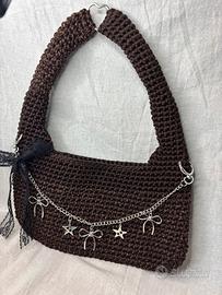 Borsa a spalla marrone uncinetto con charm