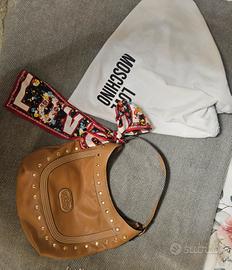 Vendo questa bellissima e versatile borsa a spalla forma di mezzaluna marca Moschino, materiale fintapelle di alta qualità. Tenuta in perfette condizioni solo un leggerissimo sbaffo della pelle sul bordo. Incluso sacchetto Moschino antipolvere, e foulard abbinato. Colore borsa caramello con borchiette dorate senza nessun graffio , e logo in metallo al centro. Acquista al prezzo di 165 euro , vendo a meno della metà:) Resto a disposizione per eventuali informazioni aggiuntive