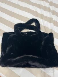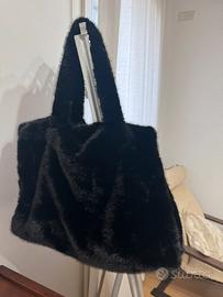 Borsa a spalla con due manici, morbidissima, in eco pelliccia nera foderata all’interno, mai usata