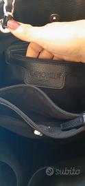 Borsa in ecopelle nera marca Camomilla originale e nuova, manici con catena argentata. molte tasche interne.