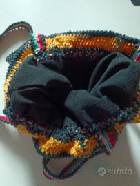Unico esemplare, borsa fatta a mano ad uncinetto, in cotone colorato, foderata all'interno (colore nero) chiusura a coulisse.