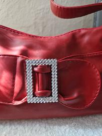 Borsa a spalla rossa con fiocco e strass