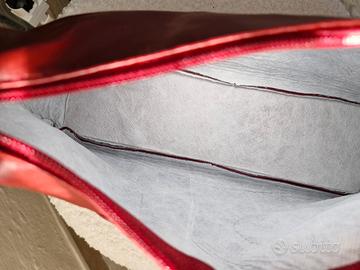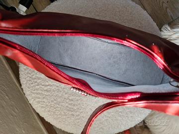 Splendida borsa a spalla rossa in ecopelle con elegante dettaglio frontale a fiocco e fibbia rettangolare ricoperta di strass luminosi. Chiusura con zip, interno foderato in tessuto bianco. Condizioni: Ottime condizioni generali, usata pochissimo. La struttura è integra e gli strass sono tutti presenti. #borsarossa #redbag #baguettebag #y2kstyle #strass #fiocco #cerimonia #vintage #vinteditalia #borsaaspalla