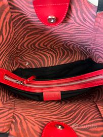 Borsa a spalla rossa in vera pelle Nicoli ampia e capiente niova mai utilizzata Genuine Leather