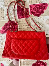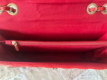 Vendo elegante borsa a spalla color rosso con lavorazione trapuntata e tracolla a catena intrecciata. La borsa è stata utilizzata una sola volta, quindi è praticamente come nuova. Internamente ed esternamente si presenta in ottime condizioni, molto curata. Dispone anche di una pratica tasca sul retro. NOTA: la chiusura è perfettamente funzionante, ma presenta alcuni segni estetici di usura visibili in foto, che non compromettono l'utilizzo. ⚠️ SOLO RITIRO A MANO.