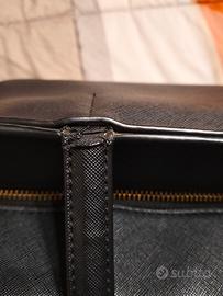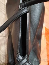 Vendo borsa a spalla Twinset originale. Colore nero. Ecopelle.misure altezza 28 cm larghezza 35 cm profondità 17 cm manico 23 cm. Ciondolo Twinset staccabile. Chiusura con cerniera e tasca interna con cerniera. Segni di usura sulla parte interna dei manici come da foto. Nessun segno nella zona di appoggio. Possibilità di consegna a mano a Torino zona Santa Rita.