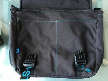 Borsa a tracolla A-Style, maschile. Originale, usata per qualche mese, è ancora in buone condizioni e presenta qualche segno di usura. Dimensioni: lunghezza 45 cm; larghezza espandibile 10 - 20 cm con doppia zip funzionante; altezza 30 cm. La borsa presenta una comoda tracolla imbottita regolabile; 3 tasche aperte e una richiudibile con zip (difettosa).