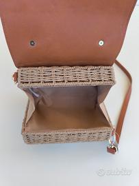 Borsa Bauletto / Bauletto / Cesto / Borsa Cesto / Paglia / Borsa Paglia / Picnic / Borsa Picnic / Borsa a tracolla moderna / Borsa Moderna / borsa intrecciata / borsa intrecciata a mano / Borsa estiva / Borsa mare / Borsa Spiaggia / Stile Vintage / Colore Beige Cammello Marrone